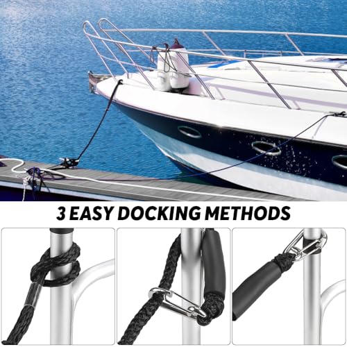 Specificaties: mizikuu Bungee Dock Line Bootaanmeertouw 10 cm, spatlijn met oog zwart met haken, bootaccessoires voor boten, kajak, jetski, pontoon, kano, 2 stuks