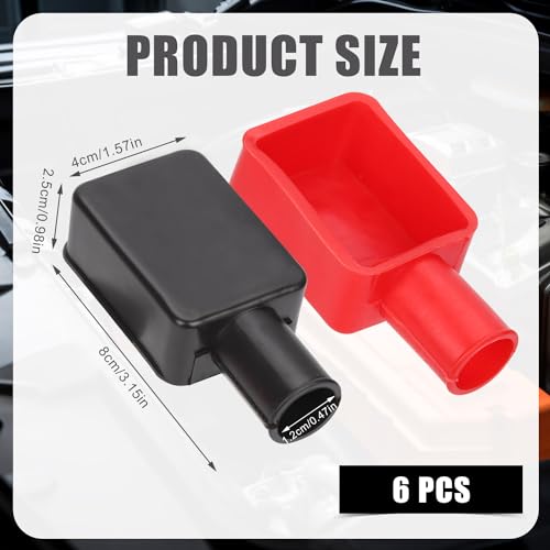 Specificaties: 6st Batterijterminalafdekkingen, Rood en Zwart Batterijterminalkappen Zacht Rubber Positieve Negatieve Isolerende Noppenafdekkingen voor Auto’s Elektrische Fietsen Vrachtwagens