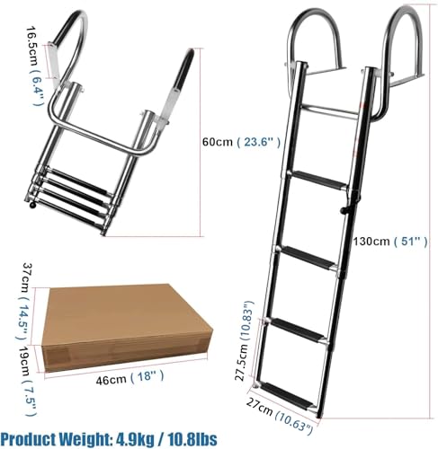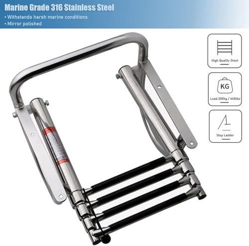 Ganekihedy Roestvrijstalen binnenboordmotor 4 treden telescopische ladder, dokladder met leuningen, opvouwbare pontonboot/jachten ladder (maat: 4 treden)